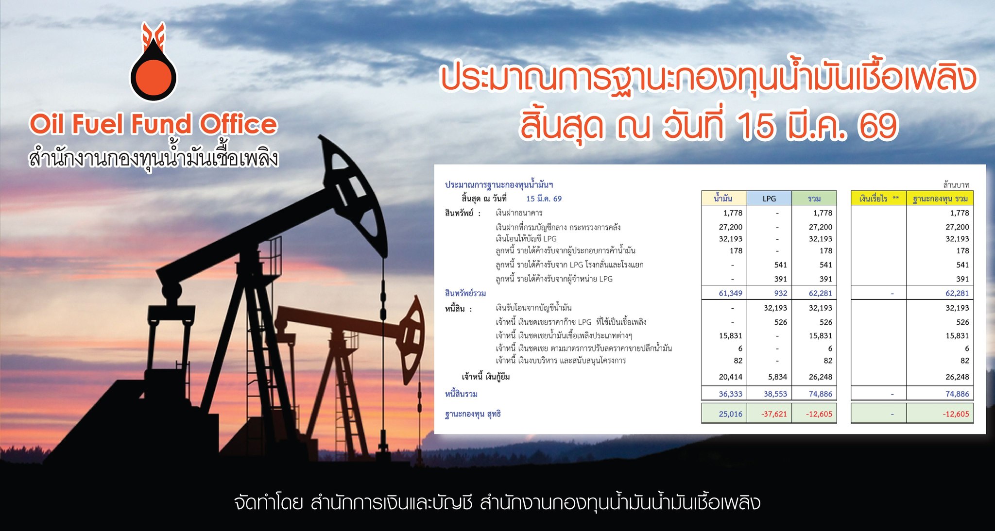 ฐานะกองทุนน้ำมัน ข้อมูล ณ 15 มี.ค.69