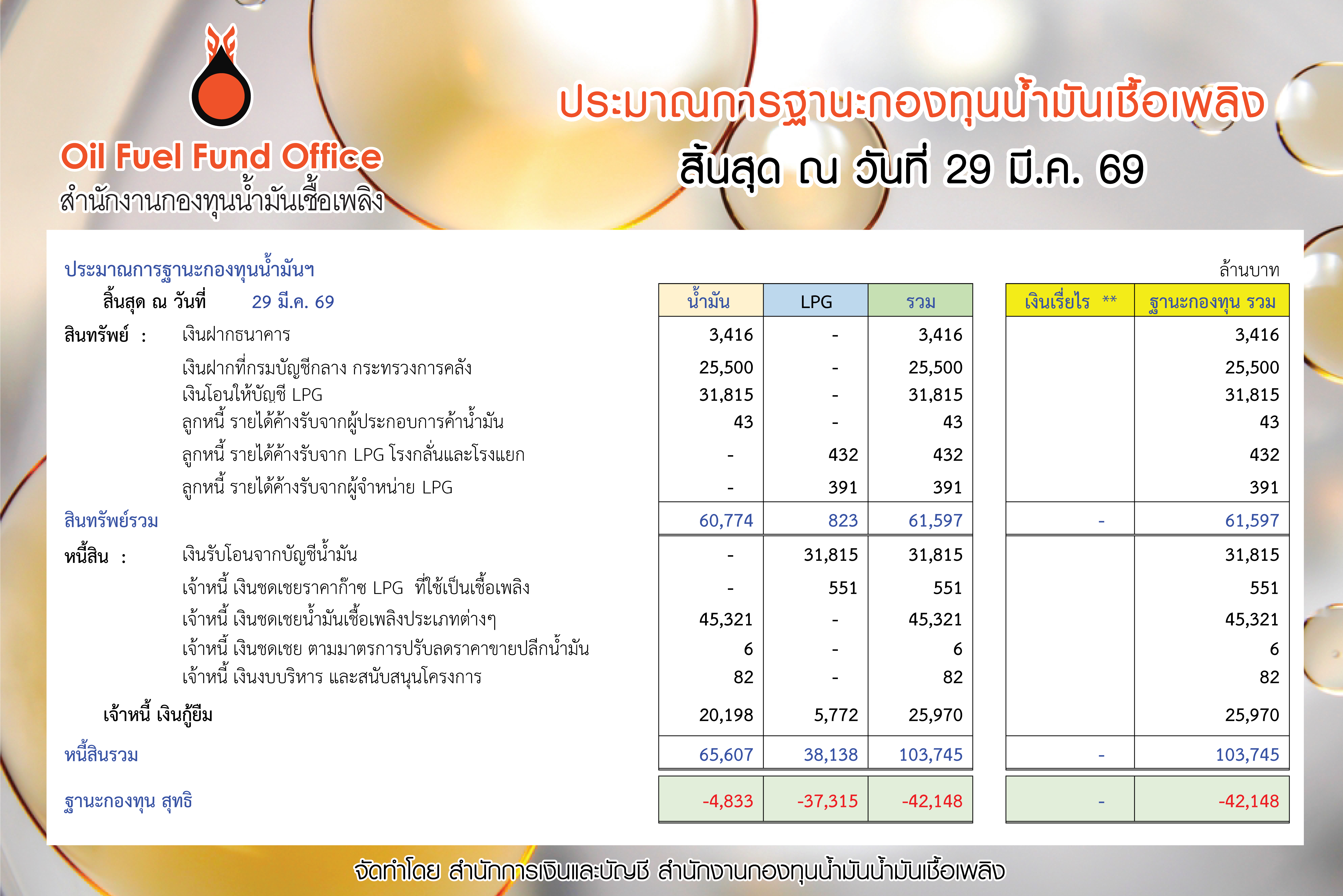 ฐานะกองทุนน้ำมัน ข้อมูล ณ 29 มี.ค.69